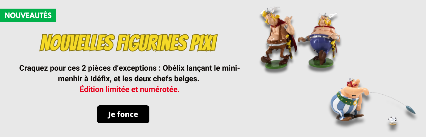 Agrandissez votre collection de produits Astérix et Obélix avec nos figurines des personnages les plus mythiques et attachants des livres de Goscinny et Albert Uderzo. Des figurines de collections Astérix et Obélix sont maintenant disponibles à l’achat sur notre boutique officielle Hachette Collections. Retrouvez des statuettes d’artisans au savoir-faire reconnu tels que Fariboles Production, Pixi Plastoys, Collectoys Plastoys et Hachette Collections. Ces produits de collection parfois basés sur les dessins vintages des premiers albums d’Astérix et de ses amis gaulois sont disponibles à l’achat sur notre boutique officielle. Des figurines de différents formats sont disponibles pour agrandir votre collection comme vous le souhaitez, ou en faire cadeau. Recevez vos figurines peintes à la main en résine, plastique ou métal dans toute la France. Certains de nos produits qui sont en édition limitée, numérotés et/ou accompagnés d’un certificat d’authenticité ne seront pas réapprovisionnés en cas de rupture de stock. Dépêchez-vous !Nos figurines collector d'Astérix et Obélix