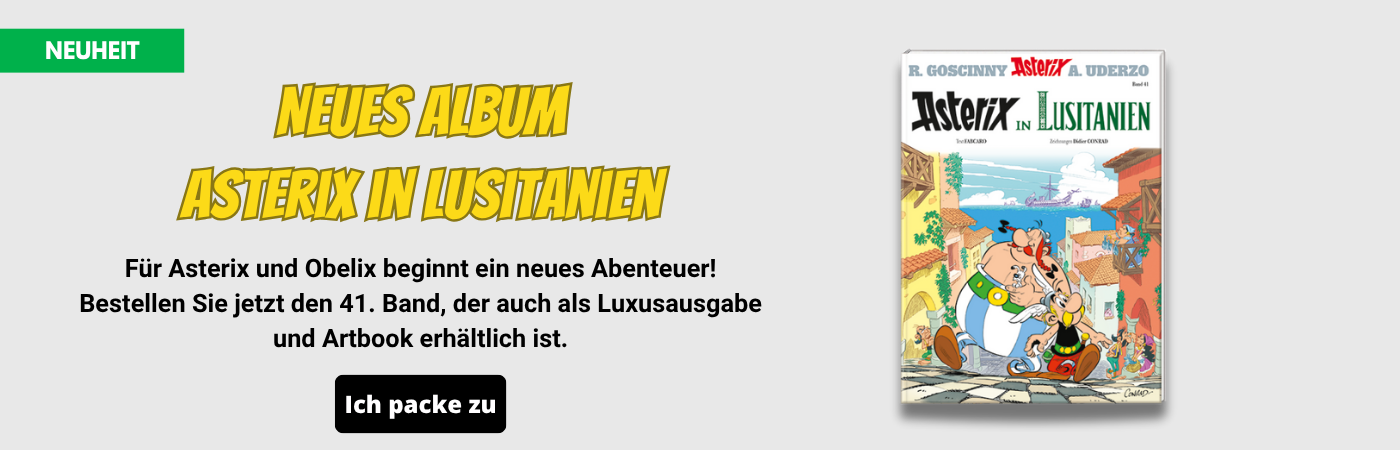 Tauchen Sie mit den Asterix-Alben der Autoren, Drehbuchautoren und Zeichner René Goscinny, Albert Uderzo, Jean-Yves Ferry und Didier Conrad ab sofort im offiziellen Shop von Hachette Collections wieder mitten in Gallien ein. Bestellen Sie die Bände Ihrer Lieblingsabenteuer von Asterix und Obelix aus dem Verlag Albert René und lassen Sie sie sich liefern. Ihre Asterix-Geschichten in verschiedenen Albenformaten und zum besten Preis. Luxusausgaben, Sammlerboxen, unveröffentlichte Sonderdrucke, die aus echten, von den Autoren selbst angefertigten Bleistiftzeichnungen stammen, limitierte, nummerierte und vom Zeichner Didier Conrad signierte Serien... In der Asterix-Ecke warten zahlreiche Überraschungen auf Sie! Erweitern Sie Ihre Asterix-Sammlung mit Sammleralben und treffen Sie Ihre Lieblingsfiguren in unveröffentlichten Zeichnungen wieder. Die Abenteuer der bekanntesten Figuren von Albert Uderzo und René Goscinny sind hier zu finden: Obelix (natürlich!), Idefix, Miraculix, Kleopatra, nicht zu vergessen Cäsar und seine Legionen von Römern und viele andere. Unsere hochwertigen Produkte finden Sie online im offiziellen Shop von Hachette Collections.