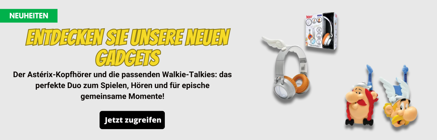 Bestellen Sie jetzt alle Ihre Lieblingsspiele von Asterix und Obelix direkt in unserem offiziellen Shop. Puzzles, Videospiele, Kartenspiele und Brettspiele rund um Ihr gallisches Lieblingsdorf: Sie werden bestimmt eine Version finden, die Ihren Wünschen entspricht, um sich mit Freunden, mehreren Spielern oder allein zu amüsieren. Finden Sie Asterix, Obelix und das ganze gallische Dorf in unseren Spielangeboten! Die Optik der Spielzeuge ist von den kultigen Zeichnungen und Szenen aus dem Werk von René Goscinny und Albert Uderzo inspiriert. Hier finden Sie die größten Spielelizenzen, um möglichst viele Fans des gallischen Dorfes, Kinder und Erwachsene, zufrieden zu stellen. Dazu gehören Playmobil, der berühmte Hersteller von Spielzeug für Kinder und Erwachsene, oder auch das berühmte Spiel des Studios Microïds, Asterix und Obelix XXL - Der Widder von Hibernia, das auf der Nintendo Switch erhältlich ist. Wenn Sie sich für die Abenteuer von Asterix und Obelix begeistern, werden Sie den Detailreichtum der im offiziellen Shop angebotenen Spiele zu schätzen wissen.