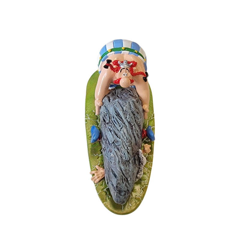 Diese wunderschöne, 10,5 cm lange Figur fängt mit beeindruckender Detailtreue eine Kultszene aus dem Asterix-Album Der Kampf der Häuptlinge ein. Sie stellt den denkwürdigen und humorvollen Moment dar, in dem Obelix Amnesix zerquetscht, ein Moment, der in der Welt von Asterix zum Mythos geworden ist. Als Bonus entdecken Sie die Figur des Regenbogen-Römers.
