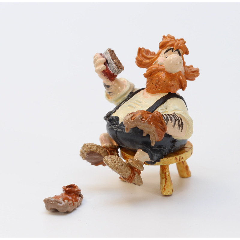 Diese wunderschöne Figur zeigt Petisuix, den helvetischen Besitzer der Auberge du Lac, der auf seinem Hocker sitzt und Schuhe putzt.