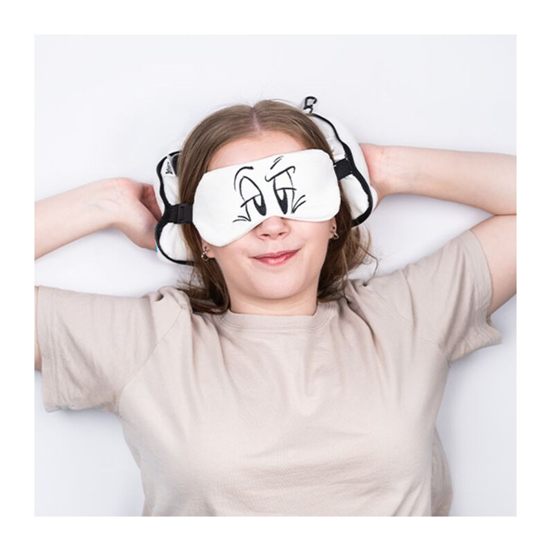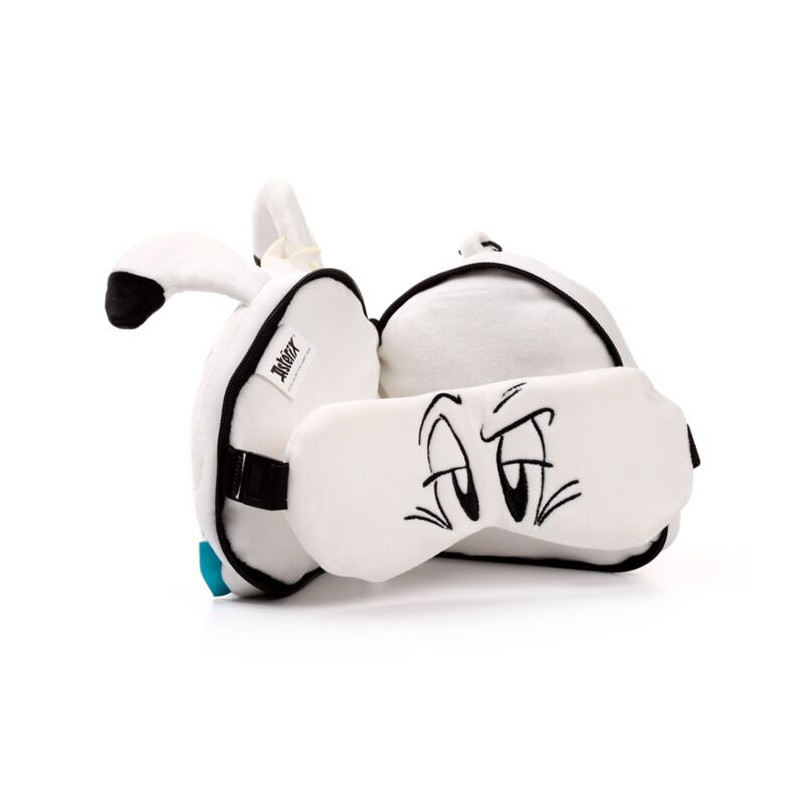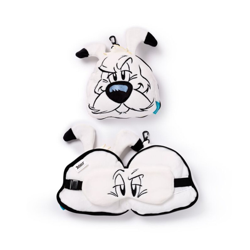 Entdecken Sie dieses tolle plüschige Idefix-Reisekissen – ein 2-in-1-Kissen mit integrierter Schlafmaske im Inneren.