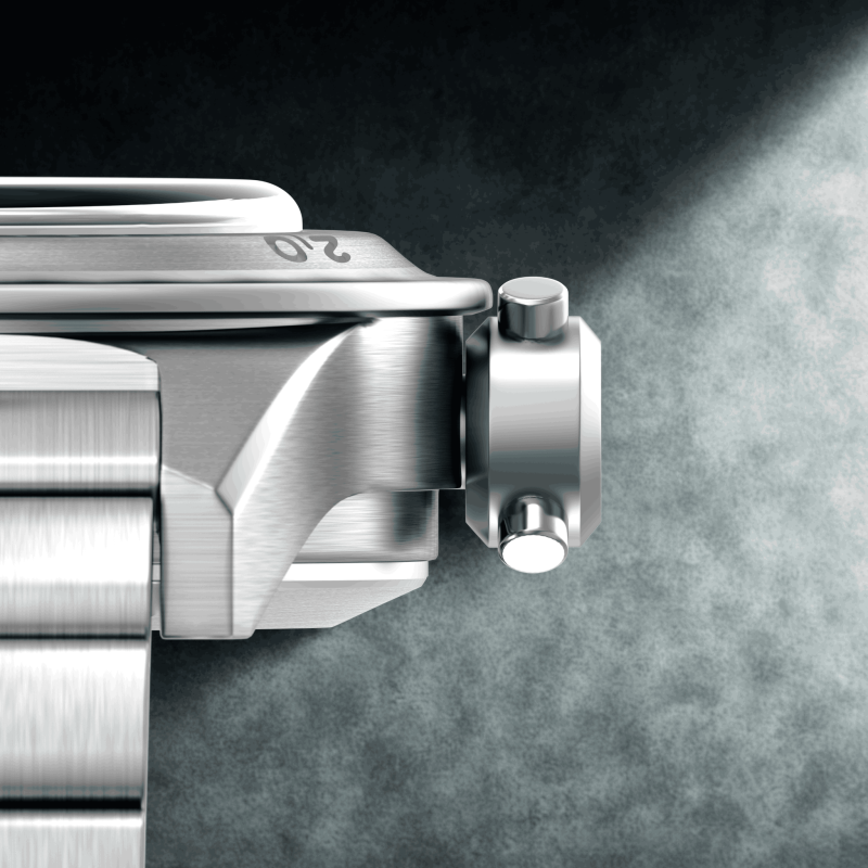 ● Lünette: Lasergravur, inspiriert von Schweizer Tresoren
