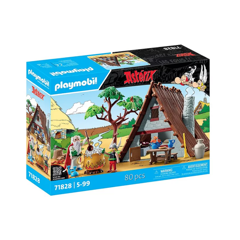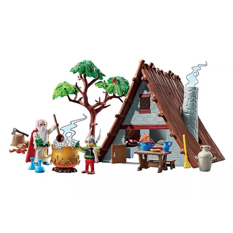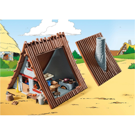 Entdecken Sie das Haus von Asterix, der gerade einen Wildschweinbraten zubereitet, während Miraculix seinen Zaubertrank braut! Enthält Asterix, Miraculix, eine Hütte sowie diverses Zubehör.