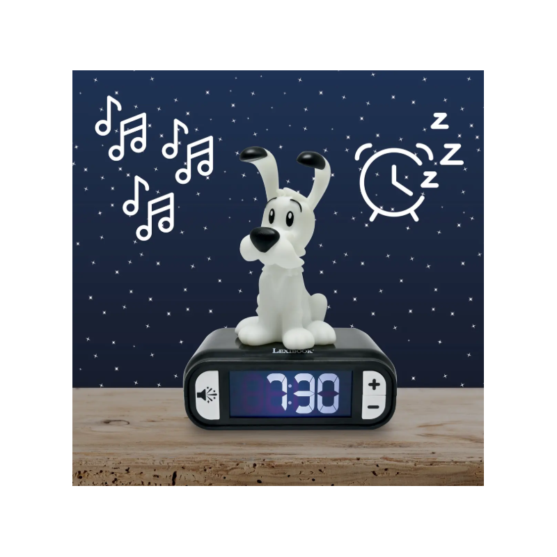 Entdecken Sie diesen wunderschönen Idefix-Wecker mit Soundeffekten.