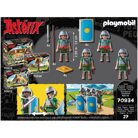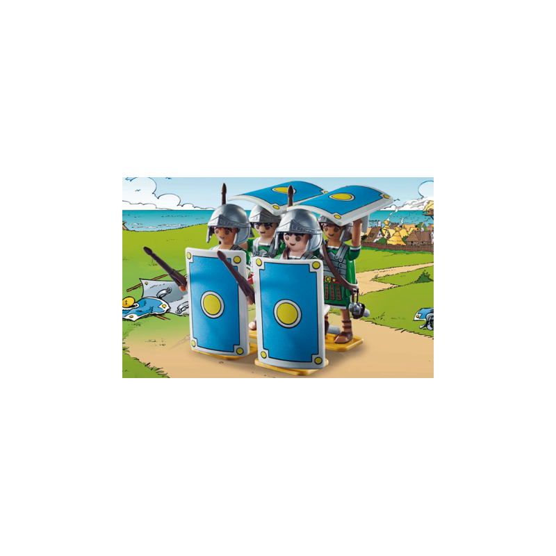 Die römischen Legionäre sind zurück … nur um erneut von den unbezwingbaren Galliern besiegt zu werden. Dieses Playmobil-Set enthält vier römische Soldaten in Schildkrötenformation, bereit zum Angriff auf das Dorf. Doch wie immer leistet der gallische Widerstand standhaft.