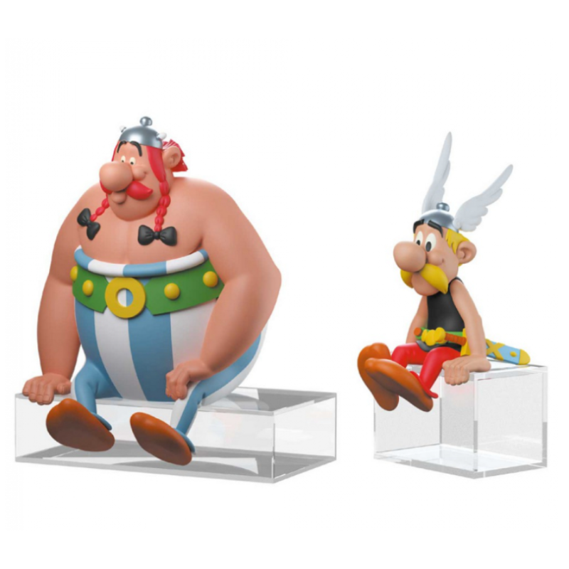 Entdecken Sie zwei nachdenklich dreinblickende Asterix- und Obelix-Figuren, die sich perfekt zur Bereicherung Ihrer gallischen Sammlung eignen.