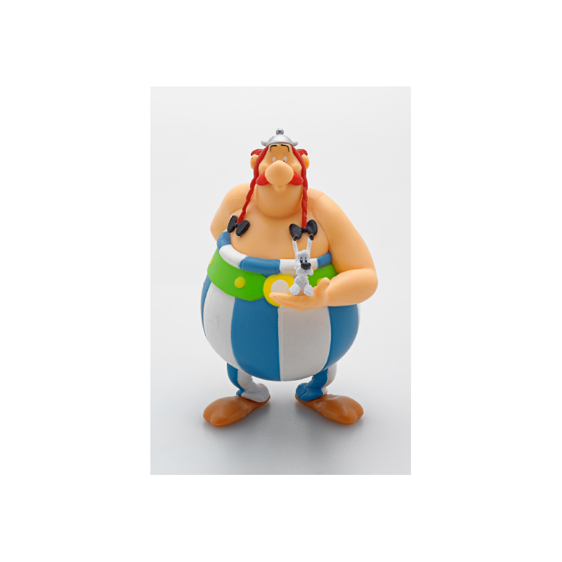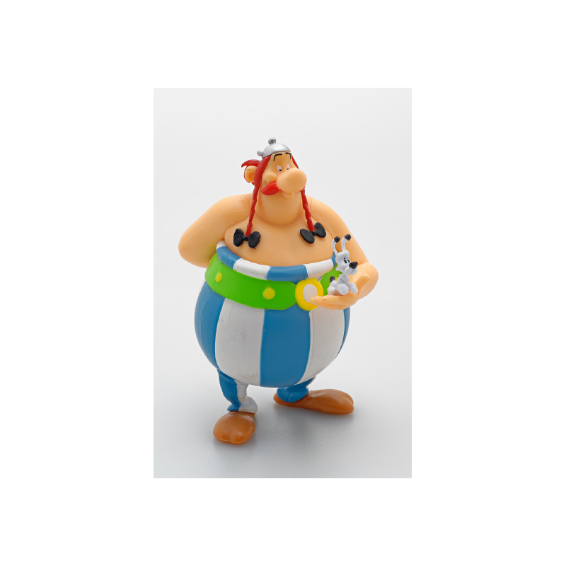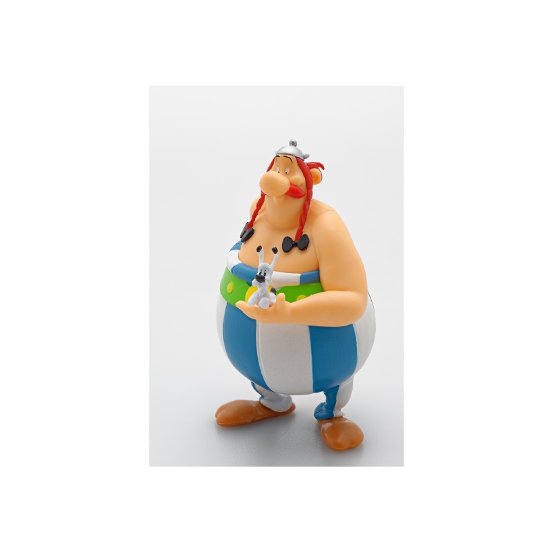Entdecken Sie eine tolle Figur von Obelix, der Idefix in seinen Armen hält, zusammen mit einem Buch*!