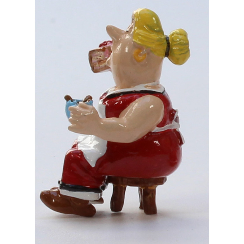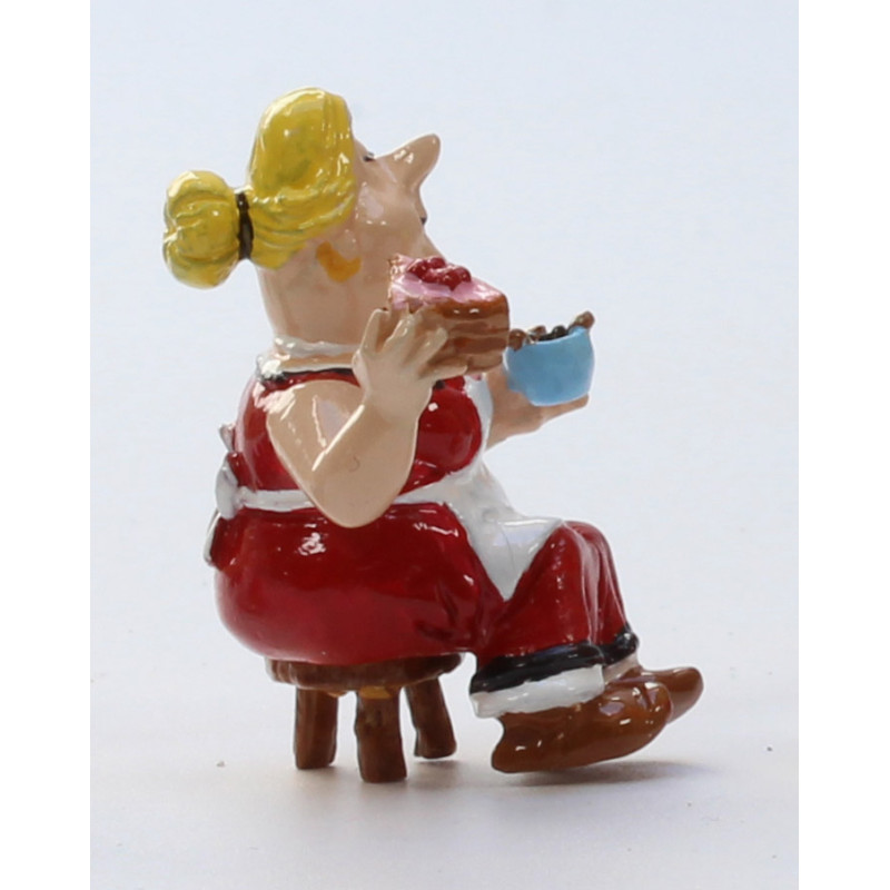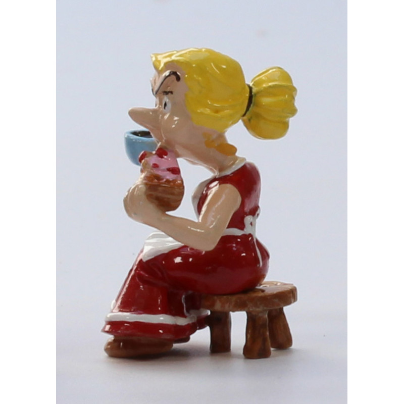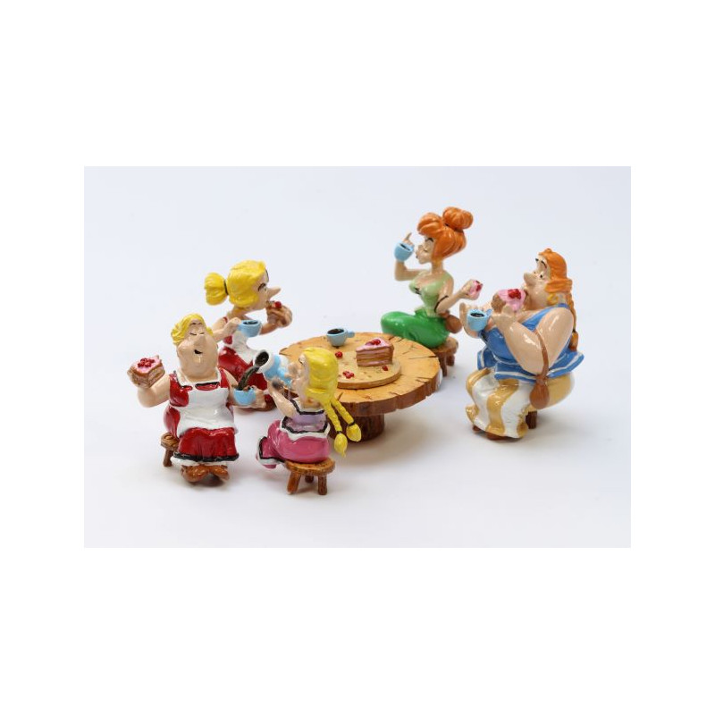 Treffen Sie die Frauen des Dorfes, Bonnemine, Frau Cétautomatix und Frau Agecanonix. Sie trinken Tee und essen Kuchen, während Tullius Detritus sich anschickt, das Dorf von Asterix und Obelix auf den Kopf zu stellen.