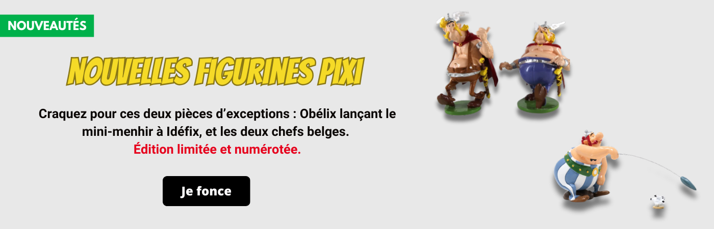 Agrandissez votre collection de produits Astérix et Obélix avec nos figurines des personnages les plus mythiques et attachants des livres de Goscinny et Albert Uderzo. Des figurines de collections Astérix et Obélix sont maintenant disponibles à l’achat sur notre boutique officielle Hachette Collections. Retrouvez des statuettes d’artisans au savoir-faire reconnu tels que Fariboles Production, Pixi Plastoys, Collectoys Plastoys et Hachette Collections. Ces produits de collection parfois basés sur les dessins vintages des premiers albums d’Astérix et de ses amis gaulois sont disponibles à l’achat sur notre boutique officielle. Des figurines de différents formats sont disponibles pour agrandir votre collection comme vous le souhaitez, ou en faire cadeau. Recevez vos figurines peintes à la main en résine, plastique ou métal dans toute la France. Certains de nos produits qui sont en édition limitée, numérotés et/ou accompagnés d’un certificat d’authenticité ne seront pas réapprovisionnés en cas de rupture de stock. Dépêchez-vous !Nos figurines collector d'Astérix et Obélix