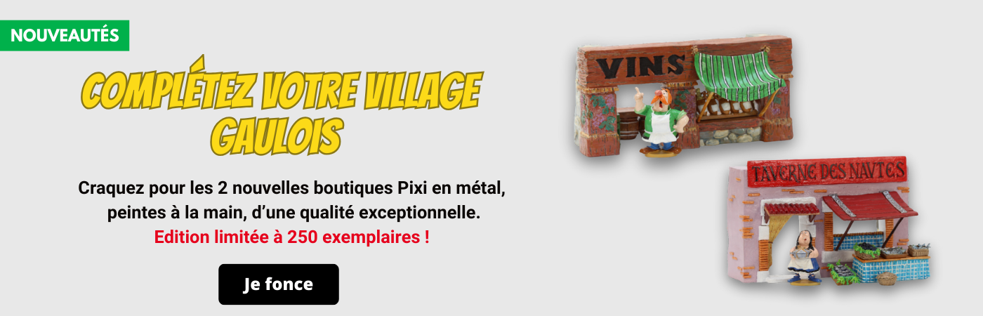 Agrandissez votre collection de produits Astérix et Obélix avec nos figurines des personnages les plus mythiques et attachants des livres de Goscinny et Albert Uderzo. Des figurines de collections Astérix et Obélix sont maintenant disponibles à l’achat sur notre boutique officielle Hachette Collections. Retrouvez des statuettes d’artisans au savoir-faire reconnu tels que Fariboles Production, Pixi Plastoys, Collectoys Plastoys et Hachette Collections. Ces produits de collection parfois basés sur les dessins vintages des premiers albums d’Astérix et de ses amis gaulois sont disponibles à l’achat sur notre boutique officielle. Des figurines de différents formats sont disponibles pour agrandir votre collection comme vous le souhaitez, ou en faire cadeau. Recevez vos figurines peintes à la main en résine, plastique ou métal dans toute la France. Certains de nos produits qui sont en édition limitée, numérotés et/ou accompagnés d’un certificat d’authenticité ne seront pas réapprovisionnés en cas de rupture de stock. Dépêchez-vous !Nos figurines collector d'Astérix et Obélix