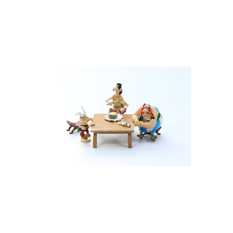 Cette scène avec son décor est composée d'Astérix, Obélix, Idéfix, Ocatarinetabellatchitchix, le mobilier, le fromage et son emballage.