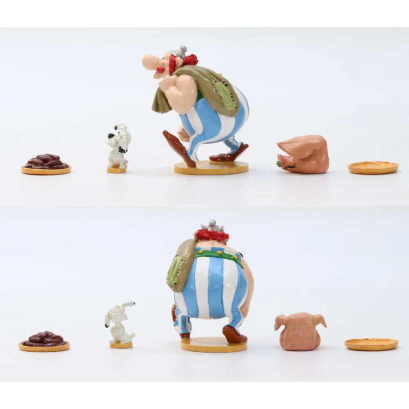 Cette magnifique figurine met en scène Obélix et Idéfix rentrant dans la boutique "Charcutier - Alimentation" pour aller récupérer un délicieux sanglier.