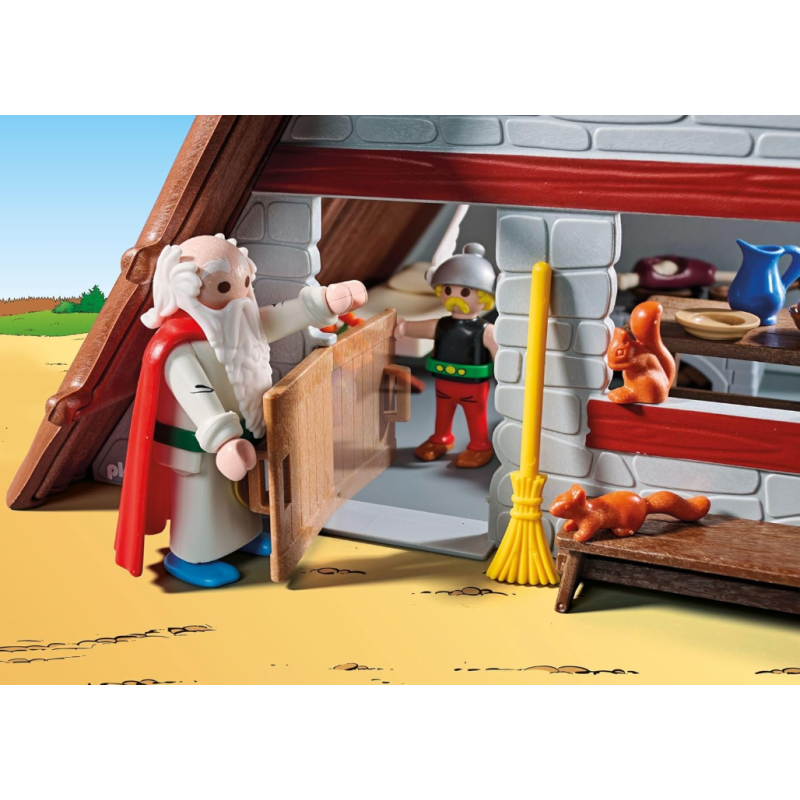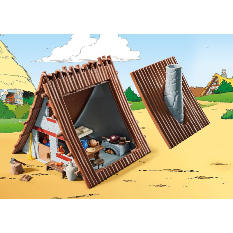 Découvrez la maison d'Astérix, qui est justement en train de cuisiner un rôti de sanglier, pendant que Panoramix prépare sa potion magique ! Comprend Astérix, Panoramix, une hutte ainsi que des accessoires.