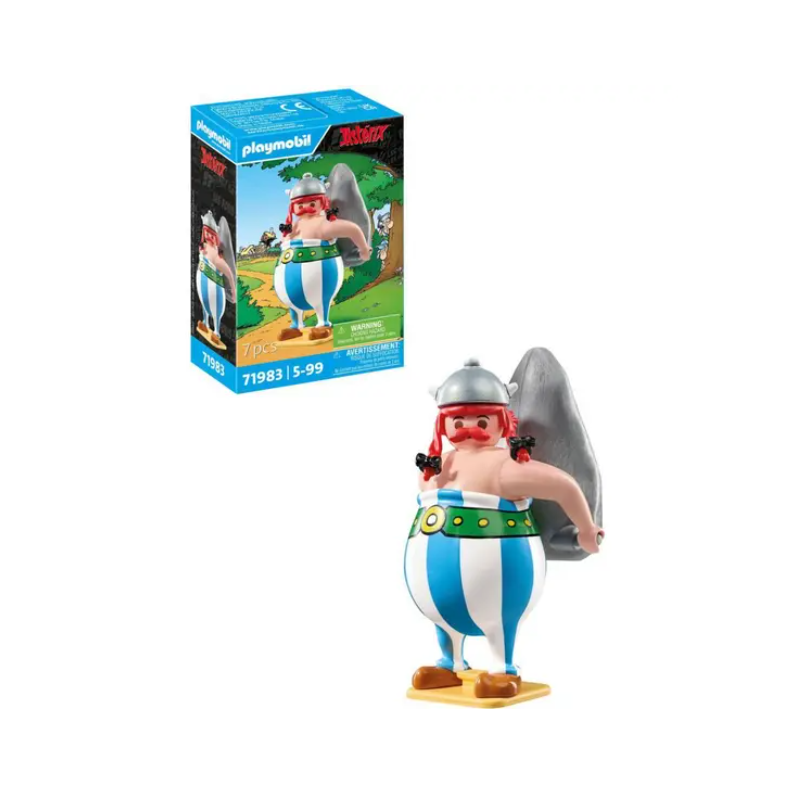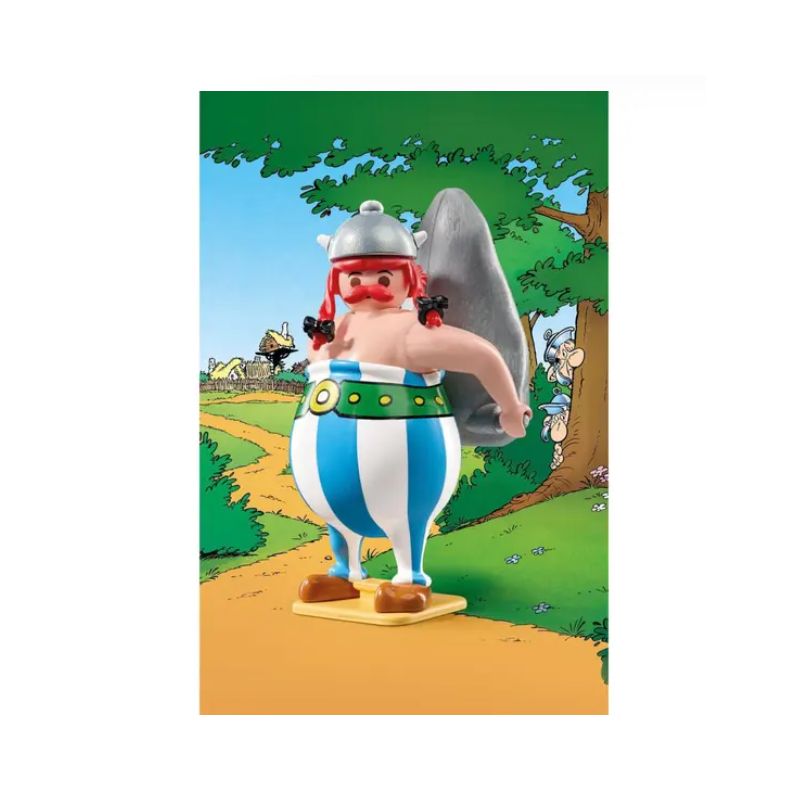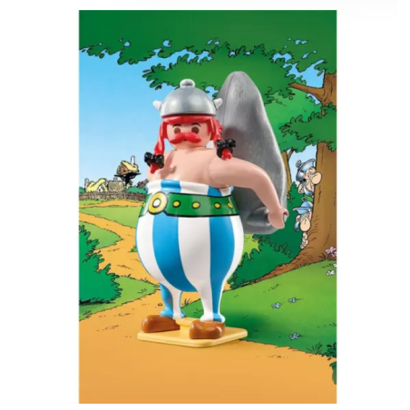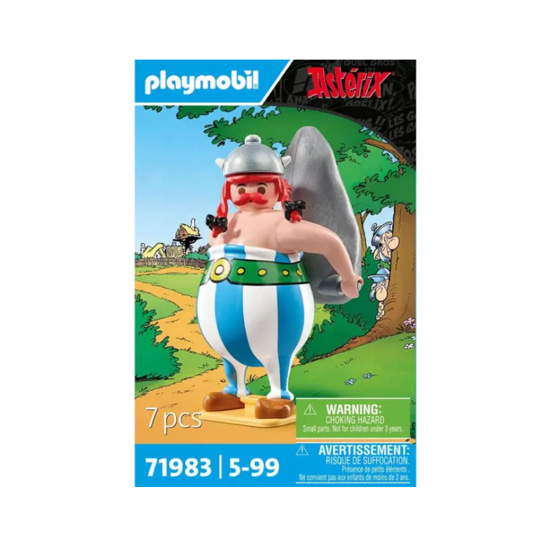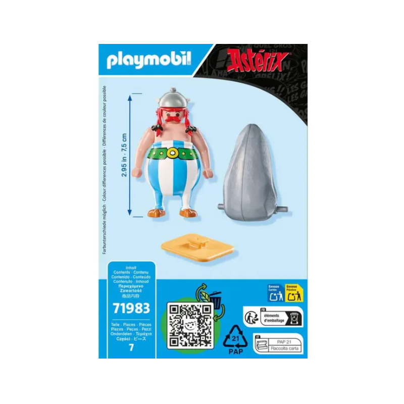Plongez dans l'univers d'Astérix avec cette figurine Playmobil d'Obélix, accompagnée de son imposant menhir !