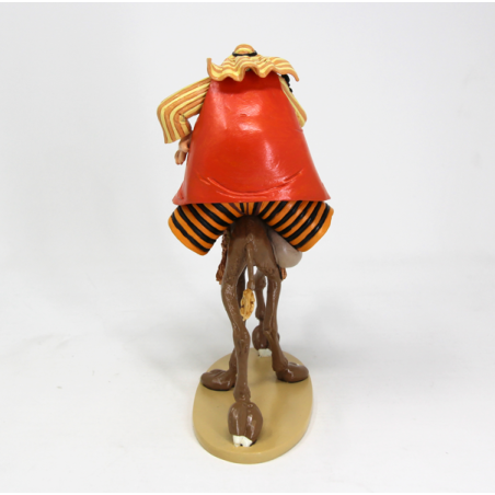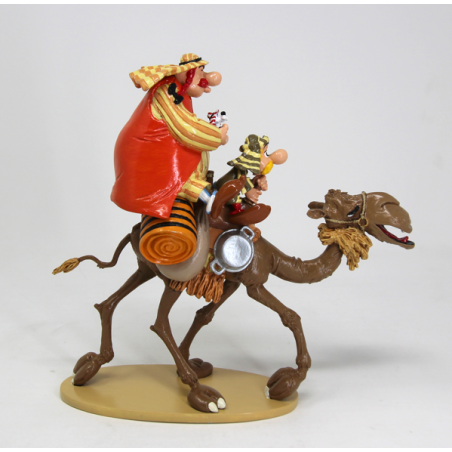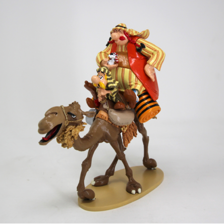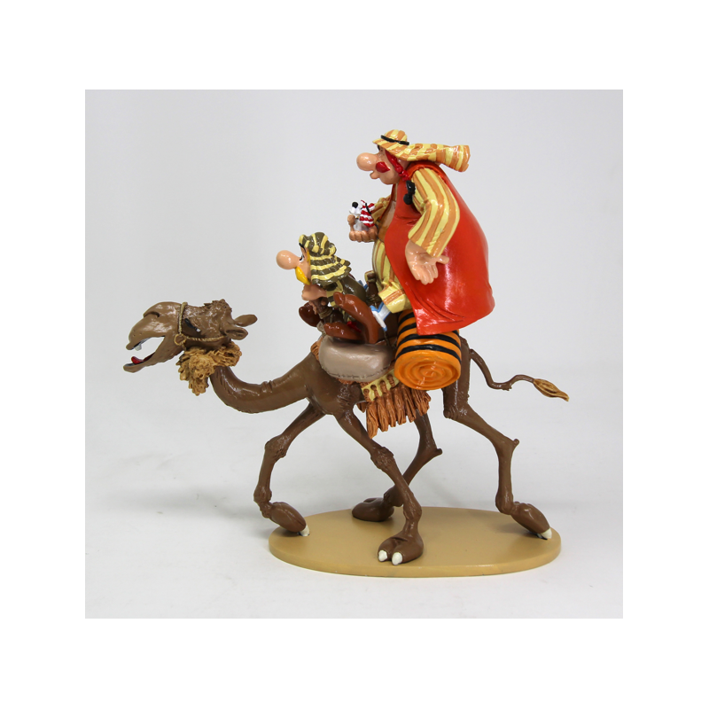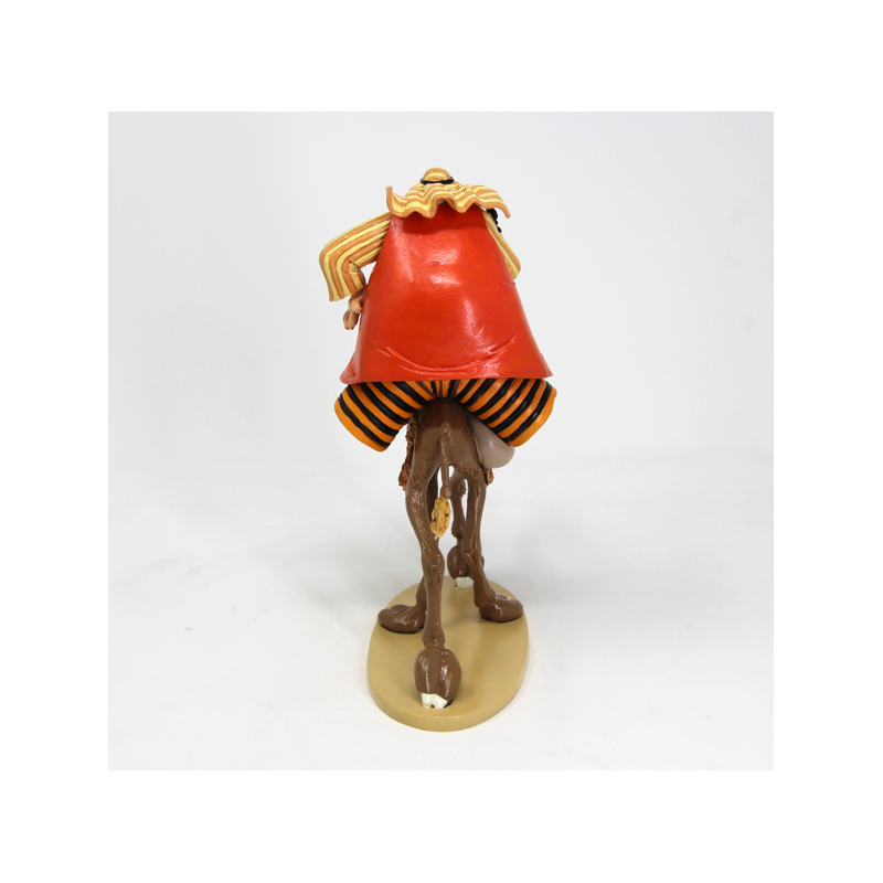 Réalisée en métal et entièrement sculptée puis peinte à la main cette figurine restitue avec précision la case B1 de la page 35 où Astérix et Obélix apparaissent sur un dromadaire épuisé. Cette pièce est accompagnée d’un certificat d’authenticité et proposée en édition limitée numérotée à seulement 400 exemplaires.