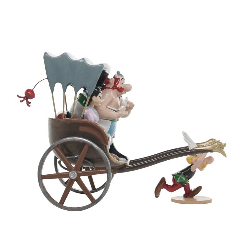 Dans cette scène exceptionnelle, les personnages constituants le visuel de couverture de l'album: le superbe pousse-pousse, Astérix, Obélix, Idéfix et la princesse Fu Yi.