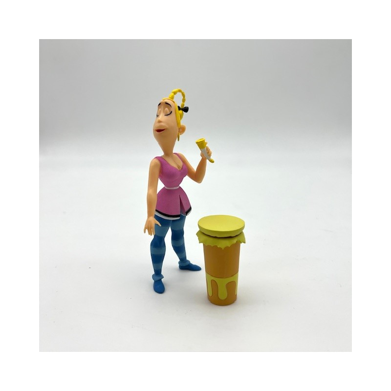Figurine Assurancetourix et un livre La Galerie des Personnages