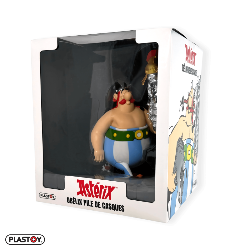 Découvrez la nouvelle figurine Plastoy en PVC, Obélix - Pile de casques, d'une belle hauteur de 21cm !