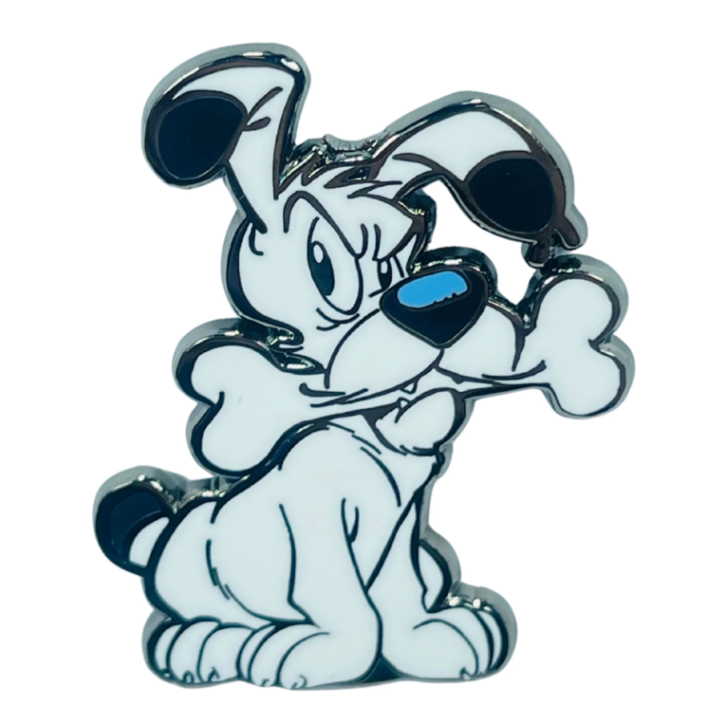 Découvrez ce superbe pin d'Idéfix et son os. Il sera parfait pour décorer un vêtement ou un accessoire !