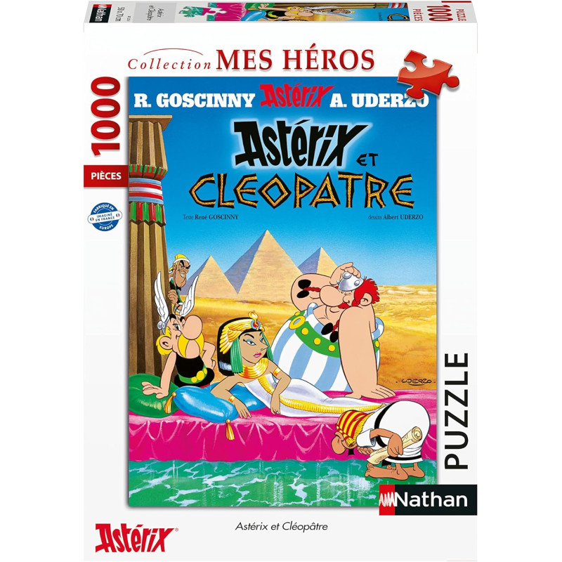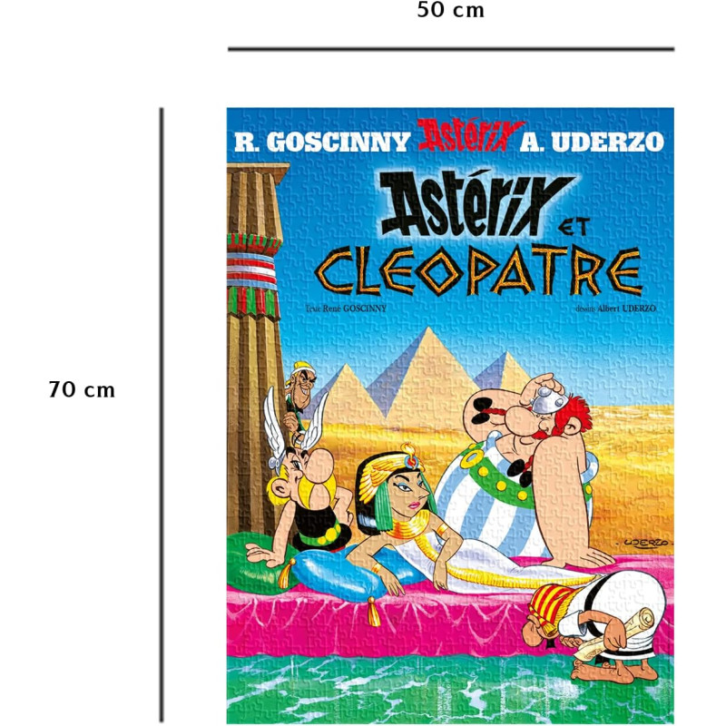 Redécouvrez sous forme de puzzle la couverture d'Astérix et Cléopâtre, le sixième album de la célèbre bande dessinée Astérix, publié en 1965, scénarisé par René Goscinny et dessiné par Albert Uderzo.